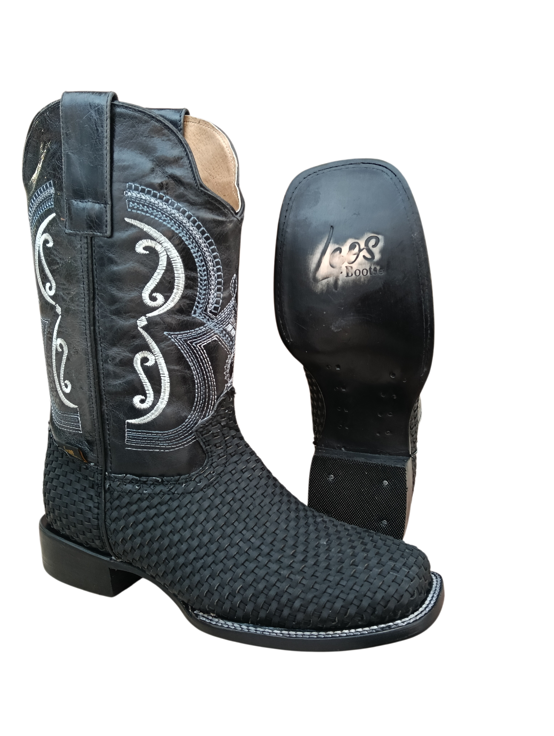 Rodeo Sólida Chinela Tejida Negro S. Cuero H-R